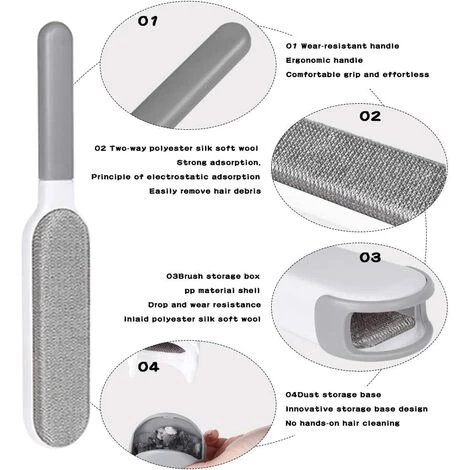 La brosse dĂ©pilatoire a un design double face qui est plus efficace pour l’Ă©pilation Ă double face. Il convient Ă tous les types de dĂ©coration: vĂȘtements, canapĂ©s, fauteuils, coussins, siĂšges de voiture, feutres, peluches, y compris couvertures Ă surface dure.
