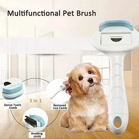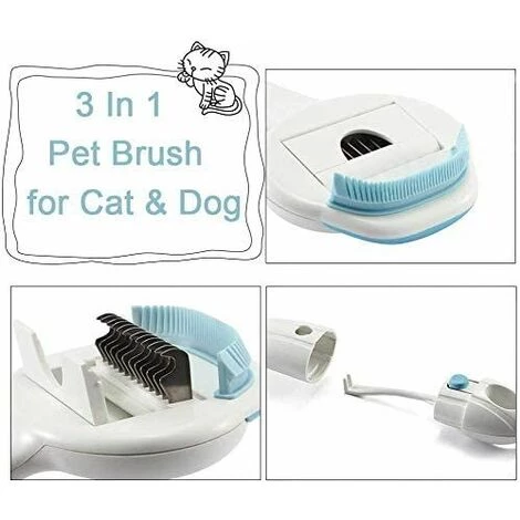 ăDerniĂšre brosse pour chat et brosse pour chienă Brosse pour animaux de compagnie 3 en 1, avec un peigne pour chien, un peigne dĂ©matifiant et un crochet Ă tiques, vous prenez soin des cheveux longs et courts idĂ©alement. Soin optimal pour chat et chien.