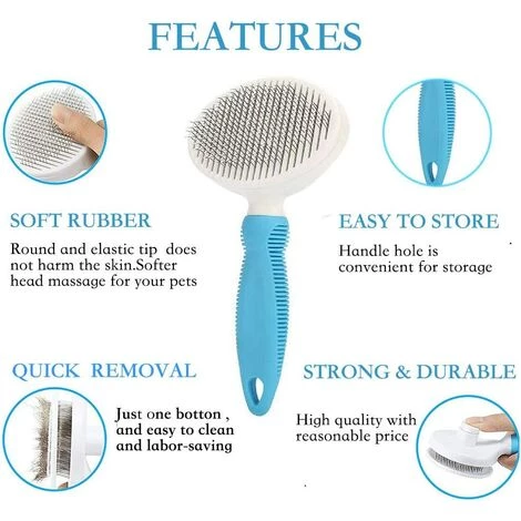 Facile À Nettoyer: Avec le bouton à la conception rétractable, la brosse rétractable pour chien est facile à récupérer les poils morts après le toilettage, réduit efficacement les temps de nettoyage des animaux.