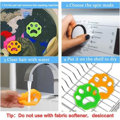 Facile utiliser: Pas besoin de retirer les poils la main. Tout ce que vous avez faire est de le mettre dans la machine laver ou le sche-linge et d’assurer le mode de schage. Retirez les cheveux ou les dbris aprs qu’il reste sur le dissolvant. Ensuite, vous pouvez dmarrer le mode de lavage normal. .