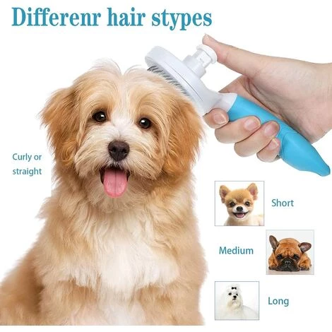 Toutes Sortes D’animaux de Compagnie:Brosse pour Chien Autonettoyant pour animaux de compagnie adapte aux chiens,chats ou autres animaux de compagnie.Il peut peigner les cheveux longs,les cheveux moyens,les cheveux courts,les cheveux boucls,les cheveux raides,les cheveux sales et les cheveux nous. .