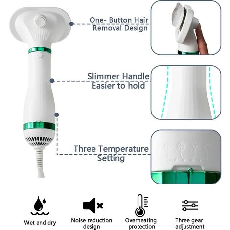 PILATION UNE CL: La nouvelle conception d’pilation une cl que vous pouvez facilement enlever les poils d’animaux en appuyant simplement sur le bouton. Plus pratique pour vous de nettoyer le sche-cheveux pour animaux de compagnie, plus efficace pour nettoyer ce que la fourrure de l’animal tombe et bloquer le sche-cheveux. .