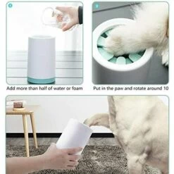 - Facile Ă utiliser: ajoutez simplement de l’eau, mettez la patte dans la tasse, dĂ©placez la tasse de haut en bas ou faites-la pivoter pour nettoyer la patte Ă 360 degrĂ©s sans angle mort. Retirez facilement la saletĂ© sur la surface et le jeu des griffes. SĂ©chez doucement la patte et rĂ©pĂ©tez l’opĂ©ration avec les autres pattes.
