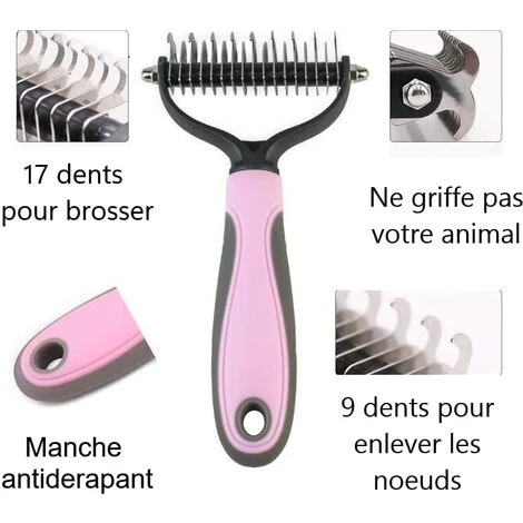 Doubles Lames : Cette Brosse Demelante Chien et Chat Comporte 9 Lames pour Enlever le Sous Poils et les Noeuds, 17 Lames Pour Toiletter votre Animal en Toute Sécurité Grâce aux Bouts Arrondis!