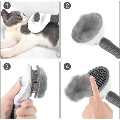 - Facile Ă nettoyer – lorsque vous avez fini de brosser votre animal, cliquez simplement sur le bouton et les poils se rĂ©tractent dans la brosse, ce qui vous permet d’enlever facilement tous les poils de la brosse.