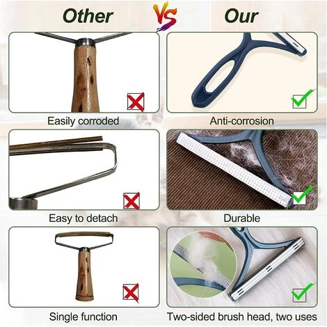 - ăFonction Double FaceăLe brosse anti poils animaux est fait de mĂ©tal et de plastique, la surface mĂ©tallique peut enlever rapidement et efficacement la peluche / les cheveux, et l’autre cĂŽtĂ© est la fonction de peignage de la peluche pour rendre vos vĂȘtements plus doux.