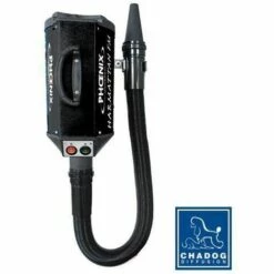 Présécheur/Séchoir professionnel de toilettage Phoenix Universal Harmattan mural (existe aussi en version sur pied et portable). Possède un accessoire permettant de l’accrocher au mur et de maintenir le flexible pour un gain de place optimal dans votre salon.