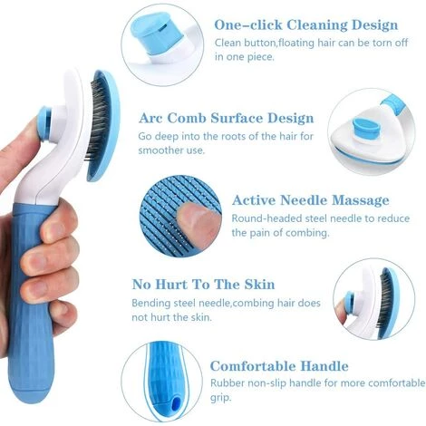ăMatĂ©riaux De Haute QualitĂ©ă: La Brosse Anti-chute Pour Chiens est faite de plastique ABS et de poils en acier inoxydable.L’aiguille en acier Ă tĂȘte ronde incurvĂ©e intĂ©grĂ©e est plus ferme, peigne les cheveux plus confortable et peut jouer un rĂŽle de massage.ăNettoyage Automatiqueă: La brosse d’Ă©pilation pour animaux de compagnie a un bouton de nettoyage automatique,et la piĂšce entiĂšre peut ĂȘtre retirĂ©e en appuyant sur le bouton.La conception autonettoyante compacte et robuste peut rĂ©sister Ă de nombreuses presses dures.La combinaison intime du peigne Ă dents et des cheveux donne Ă votre chat et Ă votre chien l’impression de faire un SPA.