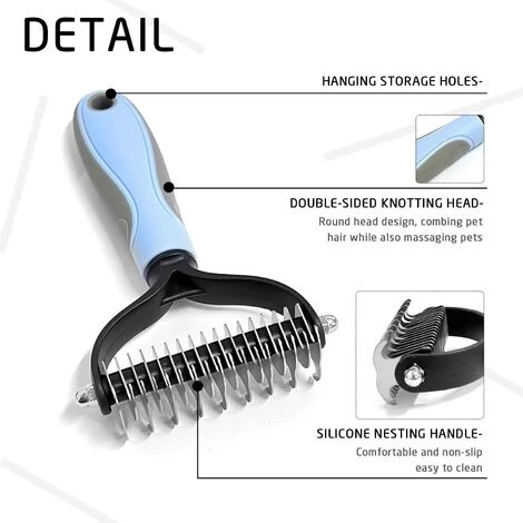 5. Matériau de haute qualité : les dents en acier inoxydable sont solides et tranchantes et ne rouillent pas. Poignée confortable antidérapante pour éviter la fatigue du toilettage ; utilisation durableDétails du produit :