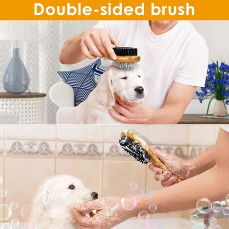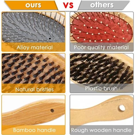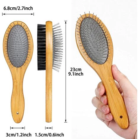 brosse pour animaux de compagnie -La brosse double face pour animaux de compagnie se compose d’un peigne de toilettage et d’une brosse de bain, idĂ©ale pour nouer et emmĂŞler, enlever les poils morts et la saletĂ©, et idĂ©ale pour le toilettage et le bain quotidiens des animaux de compagnie. brosse de bain -Une brosse Ă double face peut facilement et efficacement Ă©liminer la saletĂ© de la surface de votre animal, et le baigner rĂ©gulièrement peut prĂ©venir ses problèmes de peau et de poils, en le gardant sain, propre et plein d’Ă©nergie. peigne de beautĂ© -Les aiguilles Ă pointe sphĂ©rique sont conçues pour ne pas rayer la peau de votre animal tout en offrant un excellent massage qui favorise la circulation sanguine et laisse les poils lisses et doux. matĂ©riel de sĂ©curitĂ© -Le manche est en bois de bambou naturel avec une surface lisse, sĂ»re et sans odeur. La conception ergonomique vous permet de vous sentir Ă l’aise et dĂ©tendu lors de son utilisation. largement utilisĂ© -Les brosses souples de toilettage en bois conviennent Ă la plupart des chiens, chats et autres animaux de compagnie Ă poils moyens, longs, Ă©pais ou fins. IdĂ©al pour le soin des poils d’animaux.