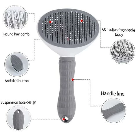MatĂ©riau : la brosse pour animaux de compagnie est fabriquĂ©e en plastique ABS et l’aiguille est en acier inoxydable. Fonction de nettoyage Ă une touche, sĂ»re et durable, facile Ă utiliser, Ă©lĂ©gante et belle. PoignĂ©e antidĂ©rapante : La poignĂ©e ergonomique est antidĂ©rapante et facile Ă saisir. RĂ©duit la fatigue des mains et l’inconfort lors du peignage des poils d’animaux. Peigne Ă cheveux rond: La brosse Ă aiguille en acier inoxydable peut ĂŞtre pliĂ©e Ă 60 degrĂ©s et le corps de l’aiguille peut ĂŞtre ajustĂ©. Le revĂŞtement Ă aiguilles rondes du peigne permet de s’Ă©piler en douceur sans endommager la peau et de profiter d’un massage agrĂ©able. Nettoyage en une seule touche : avec un design rĂ©tractable, vous pouvez vous Ă©piler d’une simple pression sur un bouton, ce qui vous fait gagner du temps et de l’Ă©nergie. Application : brosse pour animaux de compagnie, adaptĂ©e aux chiens, chats ou autres animaux de compagnie. Le peignage est plus dĂ©taillĂ©, vous pouvez peigner les cheveux longs, moyens et courts. QuantitĂ© livrĂ©e : 1 * brosse pour animaux de compagnie