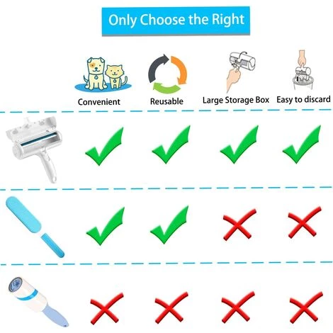 FACILE À UTILISER: Roulez rapidement la brosse anti poil magique d’avant en arrière, une charge électrostatique se créée, Les rouleaux capturent tous les cheveux d’animal familier et le velours de coton dans le récipient de poussière.
