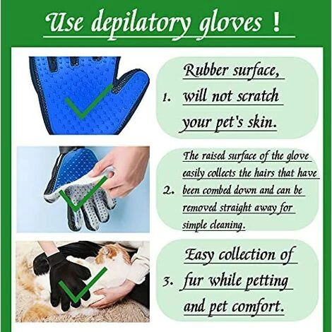 ăWide Applicationă Applicable aux animaux Ă poils longs et Ă poils courts. Convient pour l’Ă©pilation et le massage cosmĂ©tique des chats, chiens, cochons d’Inde, chevaux, lapins et autres animaux. Vous pouvez Ă©galement recueillir des cheveux sur les meubles, les canapĂ©s, les tapis, etc. Pour garder les cheveux propres. Les gants peuvent ĂȘtre utilisĂ©s Ă sec ou mouillĂ©s et vous pouvez Ă©galement les utiliser pour baigner votre animal.