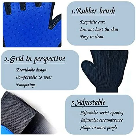 ăModĂšle Ă cinq doigtsă La conception Ă cinq doigts permet d’atteindre les endroits difficiles Ă atteindre, comme la queue ou le visage, avec plus de souplesse et d’efficacitĂ©. Il peut Ă©galement servir de massage, vous permettant de vous dĂ©barrasser facilement des cheveux tout en les caressant.Note : La petite ouverture sur le cĂŽtĂ© du gant est destinĂ©e Ă faciliter l’habillage et le dĂ©shabillage et n’est pas un problĂšme de qualitĂ©.
