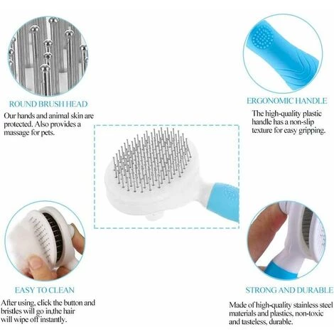 ăHAUTE QUALITĂă: Faite de protection de l’environnement acier inoxydable e plastique, qui ne provoque pas d’allergies cutanĂ©es, plus sĂ»r pour les animaux.ăCONCEPTION DE SĂCURITĂă: Avec des pointes arrondies aident Ă Ă©viter Ă nuir ou Ă gratter la peau de votre animal et empĂȘchent les poils d’ĂȘtre tirĂ©s. Un toilettage rĂ©gulier maintient votre animal propre et sain en enlevant les poils morts et la saletĂ©; en augmentant de la circulation sanguine et de la luminositĂ© naturelle de la peau.ăPOIGNĂE ERGONOMIQUEă: La poignĂ©e est ergonomique et a une conception antidĂ©rapante, ce qui est plus pratique Ă utiliser et ne glisse pas facilement.ăFACILE Ă NETTOYERă: Une fois que vous avez fini de brosser votre animal, cliquez simplement sur le bouton et les poils se rĂ©tractent dans la brosse, vous pouvez retirer facilement tous les poils de la brosse. Plus besoin de nettoyer cette brosse autonettoyant.ăGAMME D’APPLICATIONă: Cette brosse de toilettage autonettoyante convient Ă de chiens, chats, cochons parfumĂ©s, lapin, orangs-outans, etc, avec des poils longs, courts, Ă©pais, raides ou bouclĂ©s.