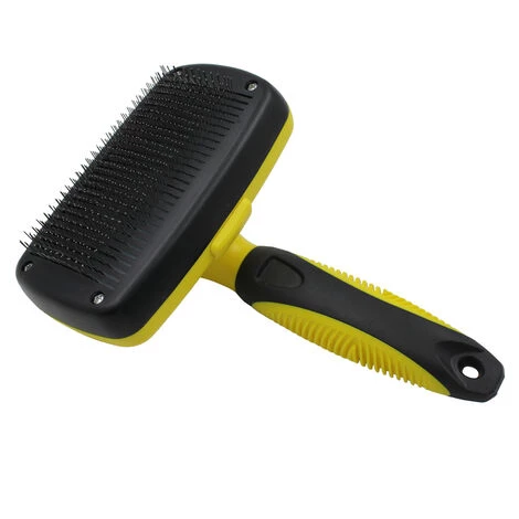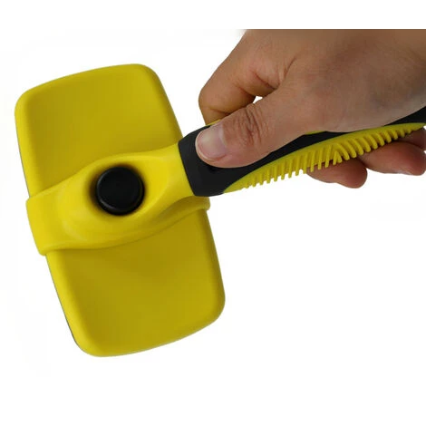 Facile Ă nettoyer: Le bouton rond et jaune sur la poignĂ©e actionne un mĂ©canisme très simple et ingĂ©nieux pour libĂ©rer toutes les fourrures mortes et les dĂ©bris que la brosse ramasse. La conception Ă poils rĂ©tractables garde la brosse de toilettage sĂ»re et facile Ă ranger dans votre kit de toilettage lorsqu’elle n’est pas utilisĂ©e.