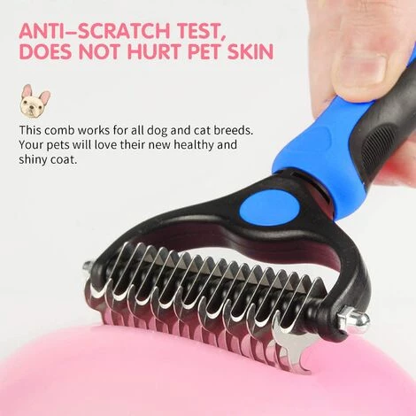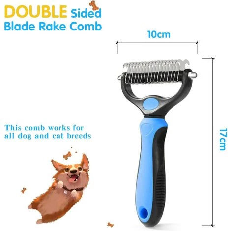 ă Enlevez Efficacement les Tapis et les EnchevĂȘtrements ă L’outil de toilettage fonctionnera Ă travers les tapis et les enchevĂȘtrements rĂ©sistants de tous les types de chiens, chats et autres animaux Ă poils longs. Le peigne Ă 2 cĂŽtĂ©s aide Ă Ă©liminer les tapis tenaces et offre une protection sans rayer le sous-poil de l’animal.