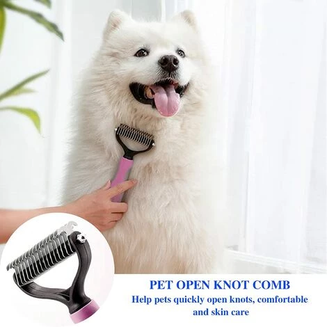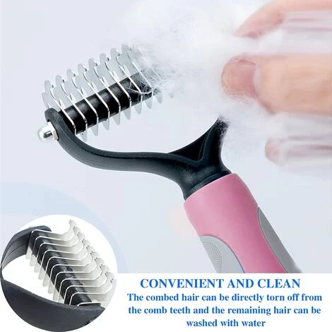 Dents double face : la taille rose est de 17,2 x 9 cm. La brosse rose pour chien se compose de 17 dents et de 9 dents des deux cĂŽtĂ©s, cĂŽtĂ© comme rĂąteau de dĂ©maturation pour les mat riaux tenaces et les enchevĂȘtrements.