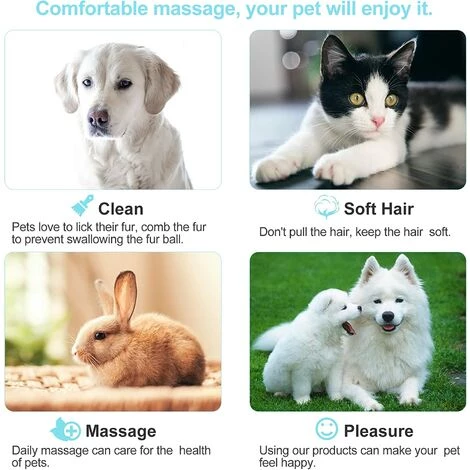 Cette brosse lisse convient à de nombreux animaux de compagnie (chiens, chats, cochons parfumés, lapin, orangs-outans, etc.), en particulier avec les cheveux longs, moyens, courts, épais, raides ou bouclés.